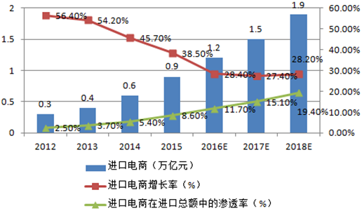 2012-2018年中國進口電商市場交易規模
