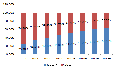 2011-2018年中國網絡購物市場交易規模結構