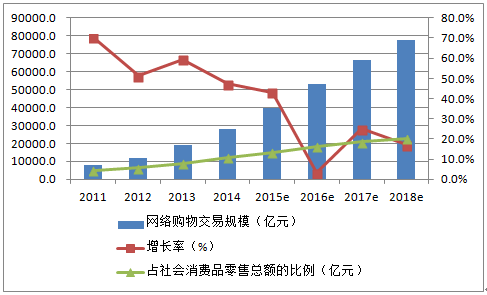 2011-2018年中國網絡購物市場交易規模
