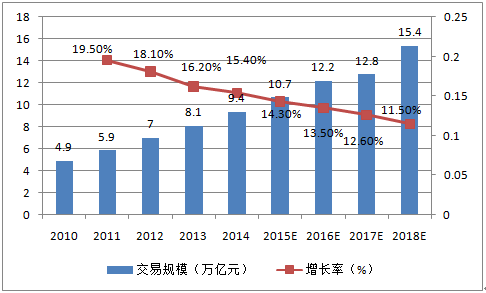 2016-2018年中國電子商務B2B市場交易規模預測