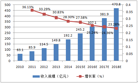 2016-2018年中國電子商務B2B市場收入規模預測