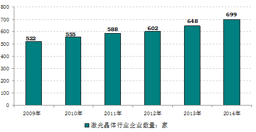 2009-2014年我國激光晶體行業企業數量