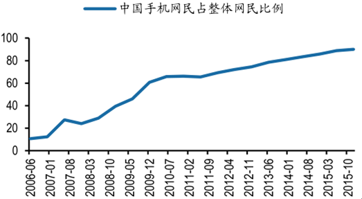 中國手機(jī)網(wǎng)民占整體網(wǎng)民比例