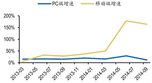 互聯(lián)網(wǎng)彩票銷售額 PC 端、移動端增速