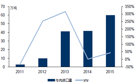 2011-2015年中國牛肉進口量