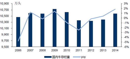 2006-2014年中國肉牛存欄量增速