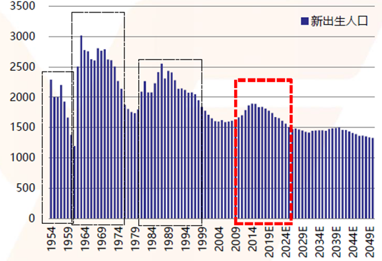 1954-2019年中國(guó)新出生人口預(yù)測(cè)(萬人)