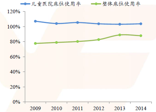 2014年兒童醫(yī)院病床使用率達(dá)到103.8%,較大幅度超過整體床位使用率88%;兒童醫(yī)院醫(yī)師日均擔(dān)負(fù)診療人次約16人次,遠(yuǎn)超醫(yī)療機(jī)整體7.5人次的平均水平,兒童醫(yī)院醫(yī)師工作強(qiáng)度大,超負(fù)荷運(yùn)行。我國(guó)兒童醫(yī)療服務(wù)供給端缺口巨大。