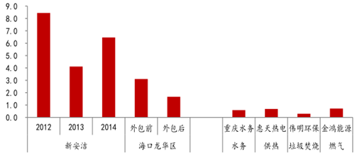 垃圾清運量在過去 5 年的復合增速為 2.5%,預計營收體量增速將在 5-8%。縣城、鄉鎮增速應高于城市。行業營收體量將呈 10-15% 的增速發展。假設行業增速為 12% ,到 2020 年若市場化程度達到 60% , 即市場化環衛營收體量有望在十三五期 間, 從 300 億元增長到 1200 億元。而以海口項目為例,若全國城市均達到海口標準,預計城市環衛收入體量將達到 1100 億元。