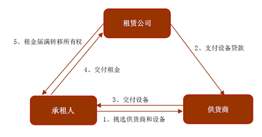 融資租賃:融資租賃是指出租人根據承租人對租賃物的選擇,向供貨人購買租賃物后向承租人租賃,承租人支付租金。租賃期限結束后,承租人以象征性的價格購買租賃物件,租賃物件的所有權由出租人轉移到承租人。最基礎的直接融資租賃包含三方(出租人、承租人、出賣人)和兩個合同(購銷合同、租賃合同)。