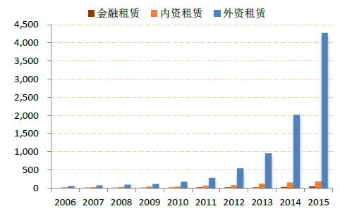2006-2015年中國不同類型融資租賃公司數量