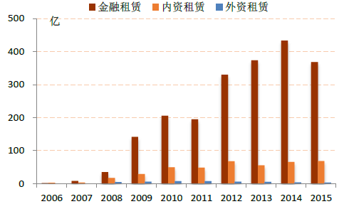 2006-2015年中國不同類型融資租賃公司平均租賃余額