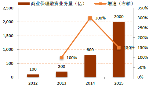 2012-2015年中國商業保理融資業務量和增速