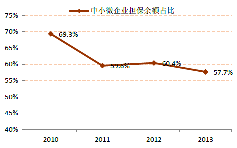2010-2013年中國中小企業融資性擔保余額占比
