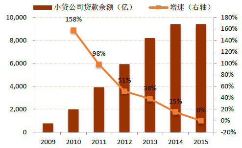 2009-2015年小額貸款公司貸款余 額及增速