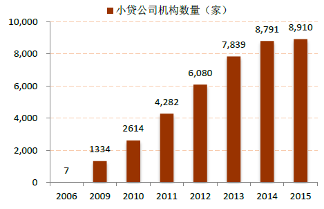 2006-2015年中國小額貸款公司機構數量