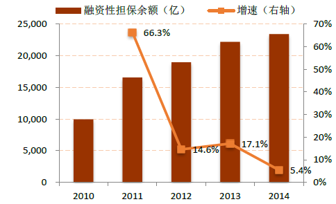 2010-2014年中國融資性擔保余額及增速