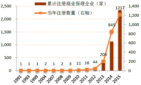 1991-2015年中國累計和新增注冊商業保理企業數量