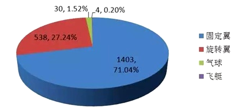 截至2014年底,中國通用航空機隊在冊總數為1975架(具)。其中固定翼飛機1403架,旋翼機538架,其他34架。