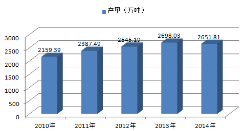 2012年以來,我國乳制品產業總體發展態勢相對平穩,行業進入了新的發展階段。2012年1-12月,全國乳制品累計產量為25,451,892.47噸,比上年增長8.07%。2012年1-12月,全國液體乳累計產量為21,465,699.53噸,比上年增長8.12%。2014年我國乳制品產量共計2651.81萬噸,比上年略有所下降。另外乳制品行業目前仍處于整改期間,2013年以來國務院及有關部門相繼頒布了一系列的政策法規,對乳制品企業的管理、生產、經營進行改革、規范與指導。2014年上半年國內乳制品產量同比下降1.8%,其中液態乳產量同比下降1.42%,乳粉產量同比下滑10.87%。這也是改革開放以來我國乳制品產量首次出現下滑。