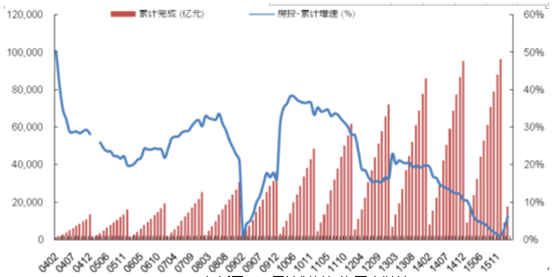 自 2009 年以來,國內部分城市投機購房需求過熱,房產價格快速上升,影響國內經濟的正常發展。2010 年 4 月至今,國務院相繼下發《關于堅決遏制部分城市房價過快上漲的通知》 (國發[2010]10 號) 、 《關于進一步做好房地產市場調控工作有關問題的通知》 (國辦發[2011]1 號) 、 《關于繼續做好房地產市場調控工作的通知》 (國辦發[2013]17 號)等文件,出臺了一系列房地產調控政策和限購措施,通過實行差別化住房信貸和稅收政策、試點征收并逐步推廣房產稅、部分城市住房限購等政策,要求各級政府采取切實措施,堅決抑制部分城市房價過快增長,促進房地產市場平穩健康發展。2004-2016年我國房地產投資累計完成額