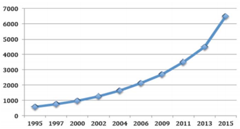 1995-2015年中國體外診斷市場規模走勢