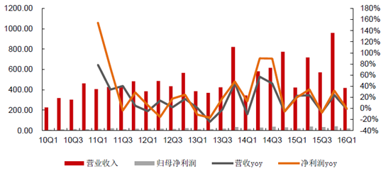 2015年一季度動車交付較多,2016年起城軌投資需求開始加碼,但2016年一季度交付較少,造成營收和凈利潤均同比下滑,但不改行業投資重心開始轉向城軌及地鐵等潛力領域、高鐵后市場等由保有量帶動的新興環節。