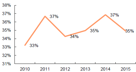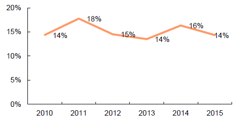 2010-2015年中國鐵路設備行業毛利率