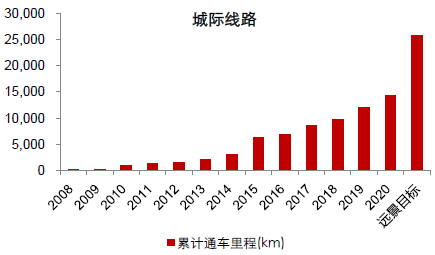 2、“十三五”期間,全國計劃新增鐵路營業里程2.9萬公里,到“十三五”末預計達到15萬公里以上。其中高鐵營業里程規劃建設1.1萬公里,“十三五”末將達到3萬公里,若加上城際鐵路,2020年有望實現通車里程4.2萬公里,較之2015年末的2.4公里翻倍,鐵路裝備將保持穩定的市場需求。若不考慮加密需求,“十三五”期間年均新增動車需求約為387列。