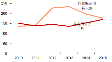 2010-2015年中國鐵路設備行業周轉天數