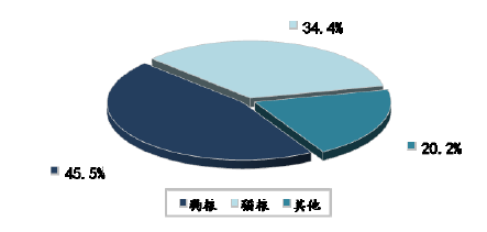 我國寵物食品行業中小型企業數量眾多,占行業內企業總數量的 90.20%,其工業產值占行業總產值的64.51%,大型企業數量約為30 個,而其產值不足行業總產值的40%,僅為35.49%,根據美國貝恩對產業集中度的劃分標準,目前我國寵物食品行業為集中度較低的競爭型行業,尚不存在市場份額具有絕對優勢的企業。