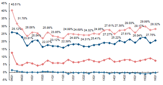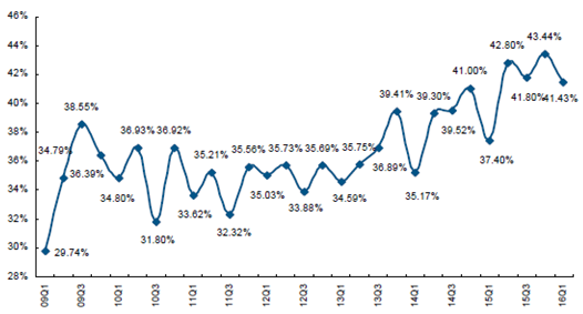 2009-2016年中國廚電行業毛利率