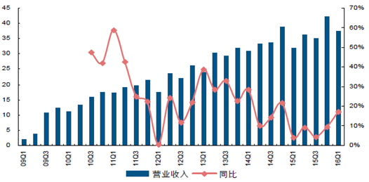 廚電行業龍頭老板電器表現依舊搶眼,其中2015 年老板電器主營增長26.58%,其中四季度同比增長29.65%,2016 年一季度老板電器主營增長22.41%;2015 年華帝股份營收有所回落主要受公司內部整合影響,隨著公司股權結構調整塵埃落定,2016 年一季度公司主營重拾增長,且后續基本面向上彈性值得期待。