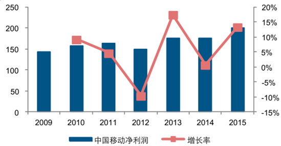 2009-2015年中國電信凈利潤情況(億元,%)