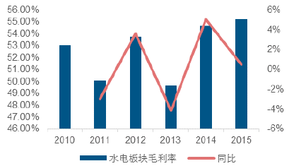 2015 年水電板塊毛利率同比增速