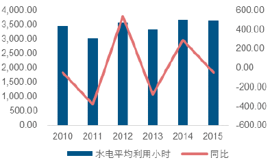 2015 年水電平均利用小時同比增速