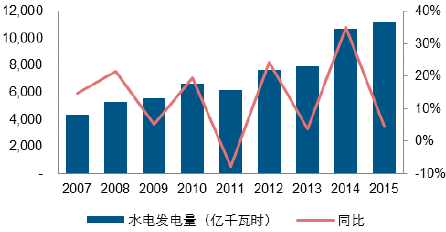 2015 年水電發電量同比增速