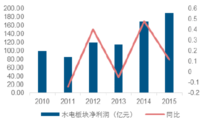 2015年水電板塊歸母凈利潤同比增速
