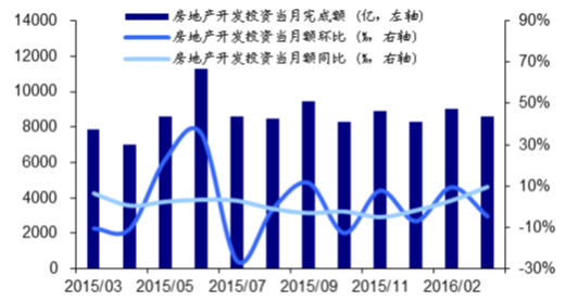 2015-2016年全國房地產開發投資當月情況