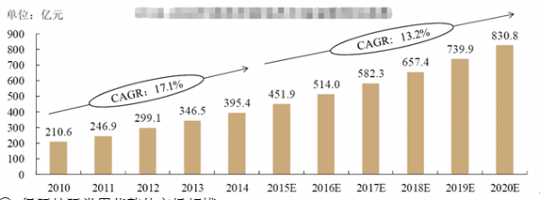 我國肝病用藥市場品種眾多,而且市場新品不斷推出。2010-2014 年,我國肝病用藥醫院市場保持穩定的增長勢頭,銷售額由2010 年的210.6 億元上升至2014 年395.4億元,2010-2014 年復合增長率為17.1%,預計到2020 年我國肝病用藥市場銷售額約830.8 億元,2015-2020 年復合增長率約13.2%。