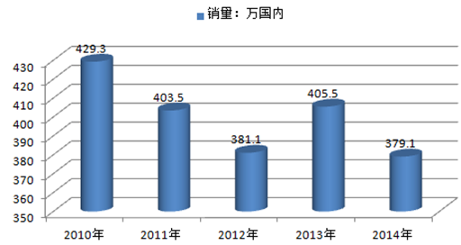 2010-2014年我國汽車配件銷量(單位:萬輛)