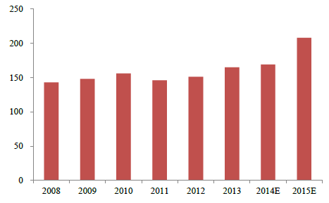 但近期部分地區漿站審批態度發生了積極的改變,我們估計2015 年年底國內獲批漿站總數達到200 余個,相比2013 年新增了40 余個。值得注意的是重慶市率先批準了6 個漿站分站,廣東省僅在2015 年就新批漿站數量約為20 個,這在整個血制品行業都是開創性的舉措。