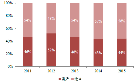 2011-2015年我國白蛋白進口份額變化趨勢
