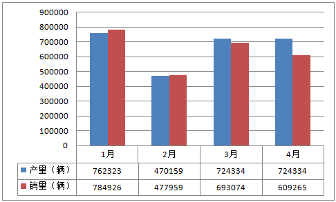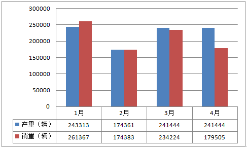 2016年1-4月中國商用車產(chǎn)銷表