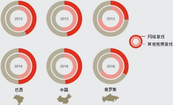 隨著計算機軟硬件技術和互聯網技術的發展,網絡游戲產品在畫面質量、音質音效、響應速度和數據交換能力等方面不斷改善,網絡游戲的互動性、豐富性和新穎性得到更充分地展現。普華永道發布的《2014-2018 年全球娛樂與傳媒行業展望》 顯示,未來數年內,在各主要發展中國家,網絡游戲占視頻游戲產業的比重將顯著提高。