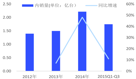 根據測算的內銷量數據,2014年和2015年前三季度, 電飯煲內銷量同增比大增 48%和11% ,在核心廠商的合力推廣下, 消費者內心呼之欲出的升級需求