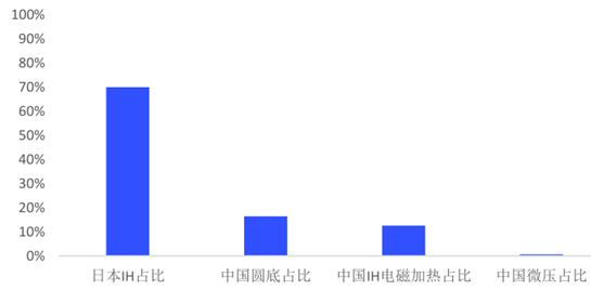 因為收入水平差距和消費者認知度低的原因,我國在電飯煲產品結構上始終落后日韓很多,IH 電飯煲和智能電飯煲的普及率遠低于日韓。2014 年開始,國內廠商扎堆加碼高端電飯煲,相繼推出 IH 電飯煲和 IH壓力電飯煲,推動國內電飯煲產品結構升級,刺激更新換代需求。