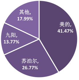 我國電飯煲市場份額前三位由美的、蘇泊爾和九陽牢牢掌控,2015 年銷量份額分別為 41%,27%和 14%,從 2013 年開始的產品升級過程中,三大巨頭的市占率不斷上升,2015 年合計占有零售額的 84%和零售量的 82%,零售數據已經表明強者恒強的邏輯同樣適用于小家電行業。