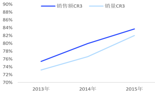 電飯煲市場集中度不斷提高(2013-2015年 )