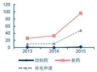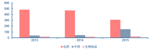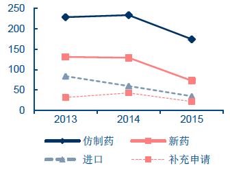 2013-2015 年化藥批準上市數量分布